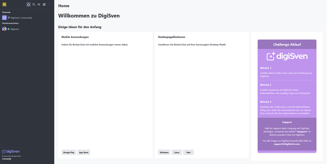 DigiSven & die Community findest du in Rocket.Chat – du entscheidest, ob du es im Browser, als Desktop-App oder auf dem Handy nutzt.